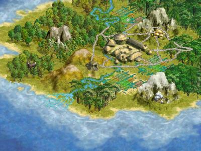 Besonders gelungen erscheinen die lebendigen und plastischen Bewässerungsfelder, welche bei Gefallen auch für andere Modpacks verwendet werden können. Wer übrigens die auffälligen Ressourcen-Grafiken in der Mitte unbewaldeter flacher Felder nicht mag (auf diesem Bild nur auf einem Feld zu sehen), der verwende einfach die mitgelieferte Moddatei "tnt.pcx" nicht.