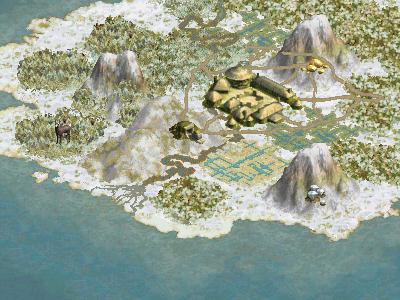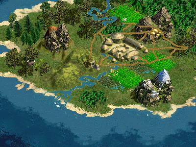 Das hier gezeigte Bild ist übrigens nur mit letzten Patch 1.29f zu erzielen, da erst in dieser Version die verbesserten schneebedeckten Berge enthalten sind.